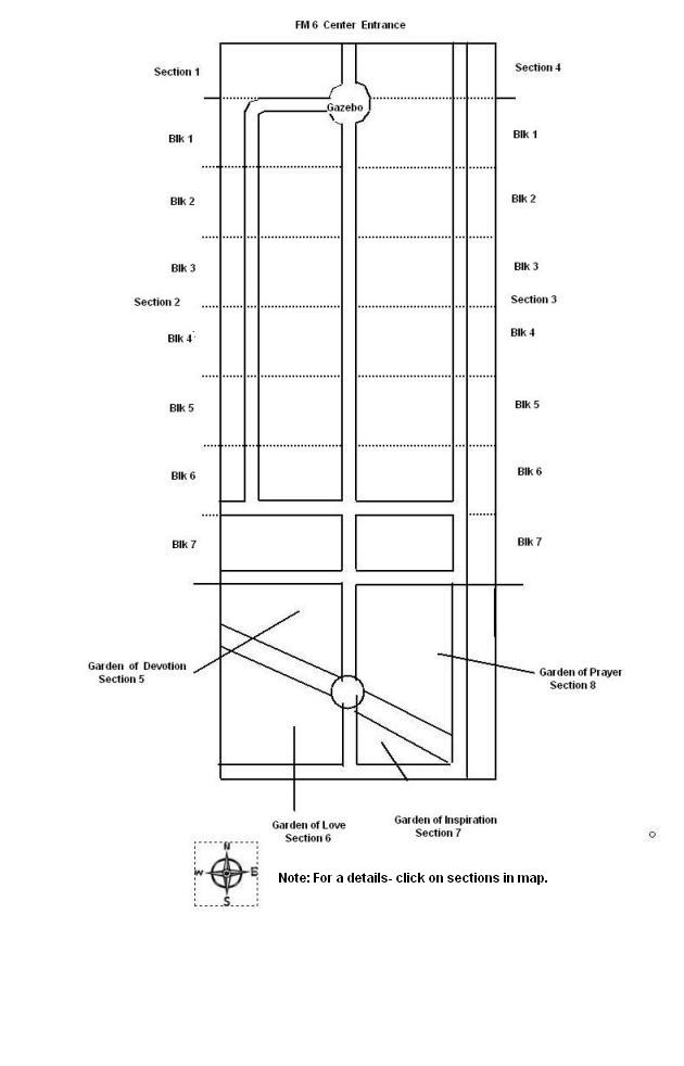 Garden of Love-Sect 6 Garden of Devotion-Sect 5 Section 2-Blk 7 Section 2-Blk 6 Section 2-Blk 5 Section 2-Blk 4 Section 2-Blk 3 Section 2-Blk 2 Section 2-Blk 1 Section 1 Garden of Inspiration-Sect 7 Garden of Prayer-Sect 8 Section 3-Blk 7 Section 3-Blk 6 Section 3-Blk 5 Section 3-Blk 4 Section 3-Blk 3 Section 3-Blk 2 Section 3-Blk 1 Section 4